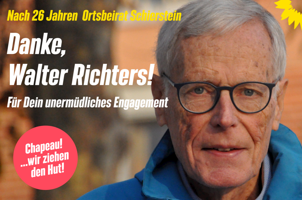 Wir danken Dir für Dein Engagement! Schierstein ist nicht zuletzt dank Dir ein gutes Stück grüner, sozialer und gerechter geworden!