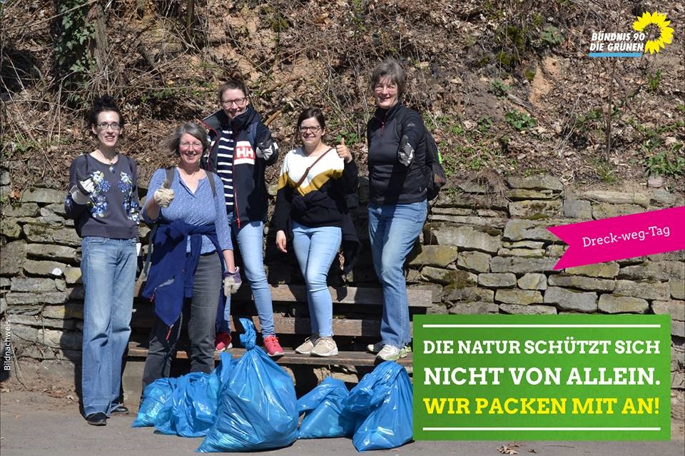 Frauenpower beim Dreck-weg-Tag der ELW - sechs volle Mülltüten hat der AK Umwelt im Nerotal am 30.03. gesammelt. Belohnt wurden wir mit bestem Kaiserwetter!
